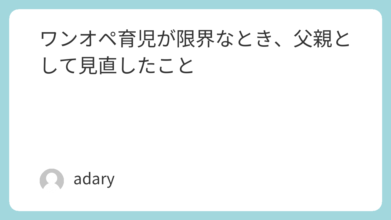 ワンオペ育児が続くと、どこかで限界を感じる瞬間が訪れます。
