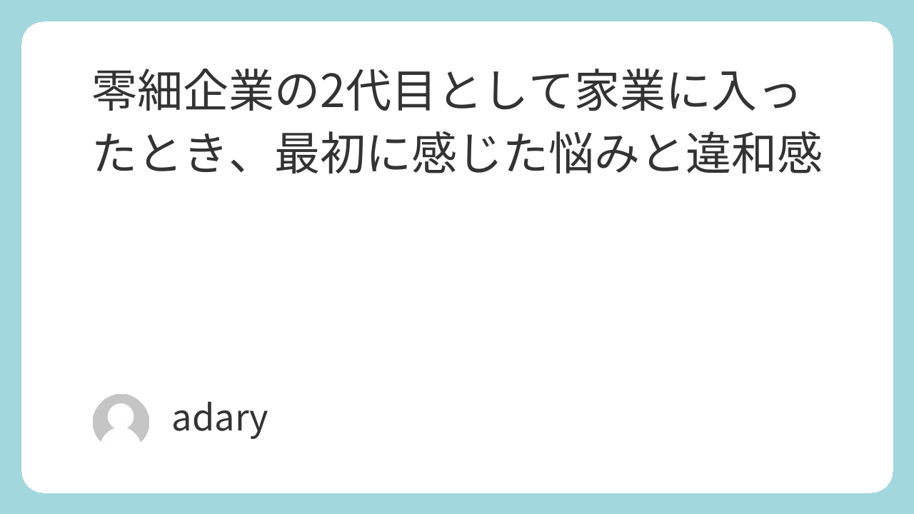 零細企業の2代目として家業に入る、という選択は、外から見ているほど単純なものではありません。